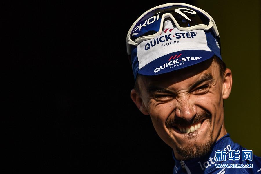 ↑7月17日,快步车队车手阿拉菲利普在领奖台上庆祝。当日,2018环法自行车赛结束了第十赛段从阿讷西至大博尔南全长158.5公里的争夺,快步车队车手阿拉菲利普以4小时25分27秒的成绩获得本赛段冠军,BMC车队车手范阿韦马特连续第七天保有领骑黄衫。 新华社/法新