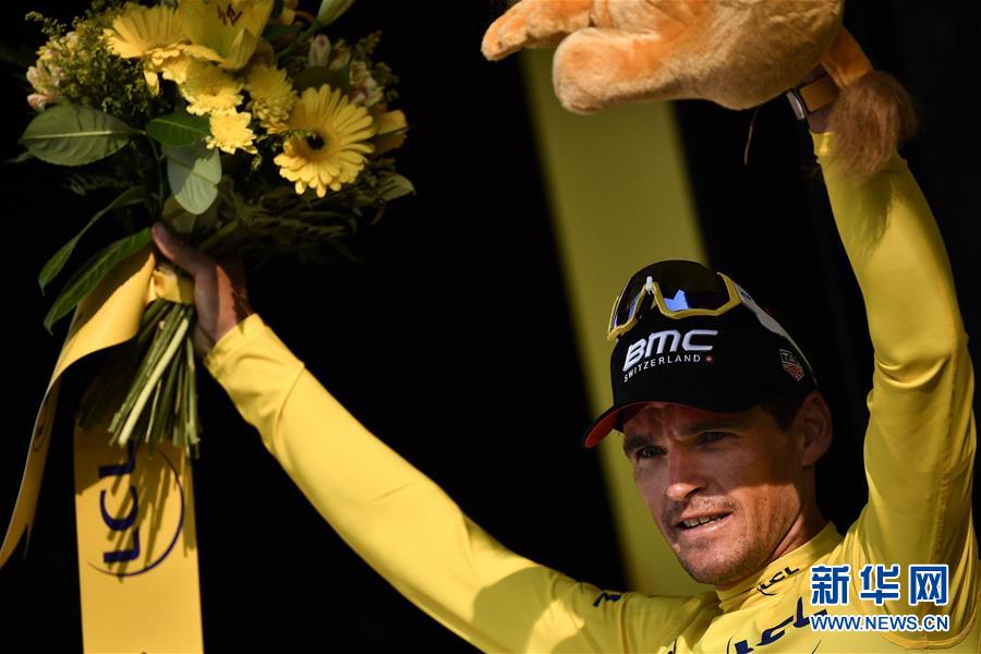 ↑7月17日,BMC车队车手范阿韦马特在领奖台庆祝。 当日,2018环法自行车赛结束了第十赛段从阿讷西至大博尔南全长158.5公里的争夺,快步车队车手阿拉菲利普以4小时25分27秒的成绩获得本赛段冠军,BMC车队车手范阿韦马特连续第七天保有领骑黄衫。 新华社/法新