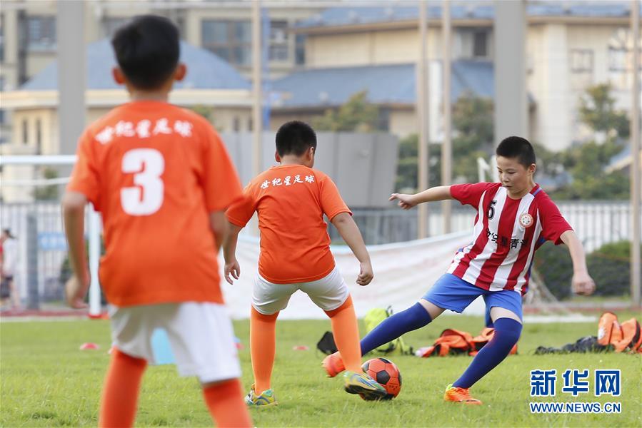 ↑7月18日,小学生们在江苏省淮安市盱眙县体育场内进行足球对抗训练。 暑假期间,各地的孩子们参与丰富多彩的活动,健康快乐过暑假。 新华社发(颜怀峰 摄)