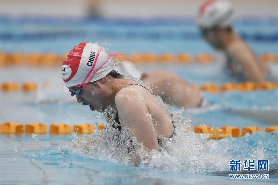 ↑7月19日,中国地质大学代表队选手张欣羽在女子组50米蛙泳预赛中。 当日,为期三天的2018年中国大学生阳光体育游泳比赛在浙江省苍南县体育中心游泳馆开赛,来自全国42支高校代表队,共计300余名运动员参加比赛。 新华社记者黄宗治摄