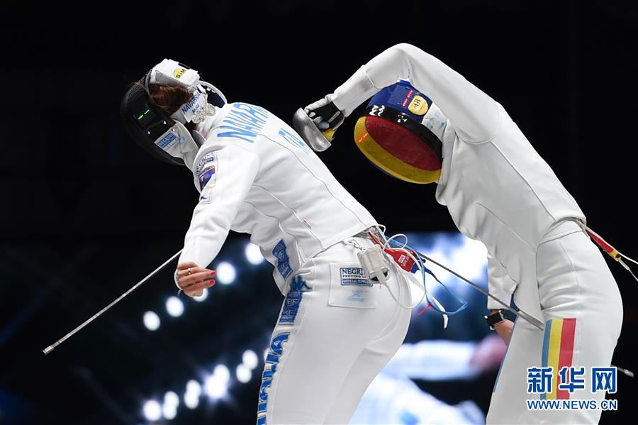 ↑ 7月22日,意大利选手纳瓦利亚(左)与罗马尼亚选手波佩斯库在比赛中。 新华社记者李博摄