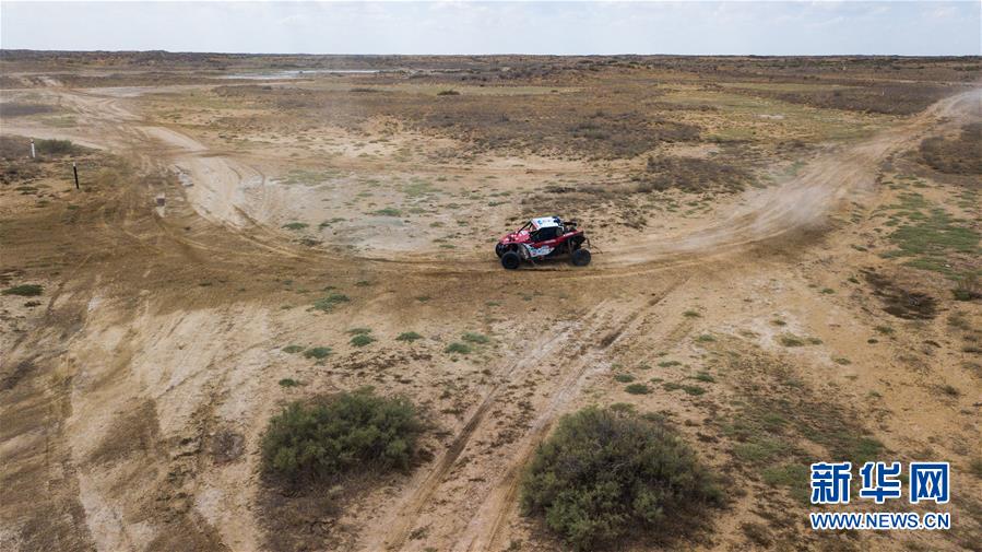 ↑ 7月21日,SUPROTEC RACING车队的俄罗斯女车手玛利亚·欧帕里娜和搭档泰西亚·斯塔涅娃驾驶赛车在比赛中。 当日,2018丝绸之路拉力赛第一赛段比赛在俄罗斯伏尔加河畔的阿斯特拉罕进行。 新华社记者白雪骐摄