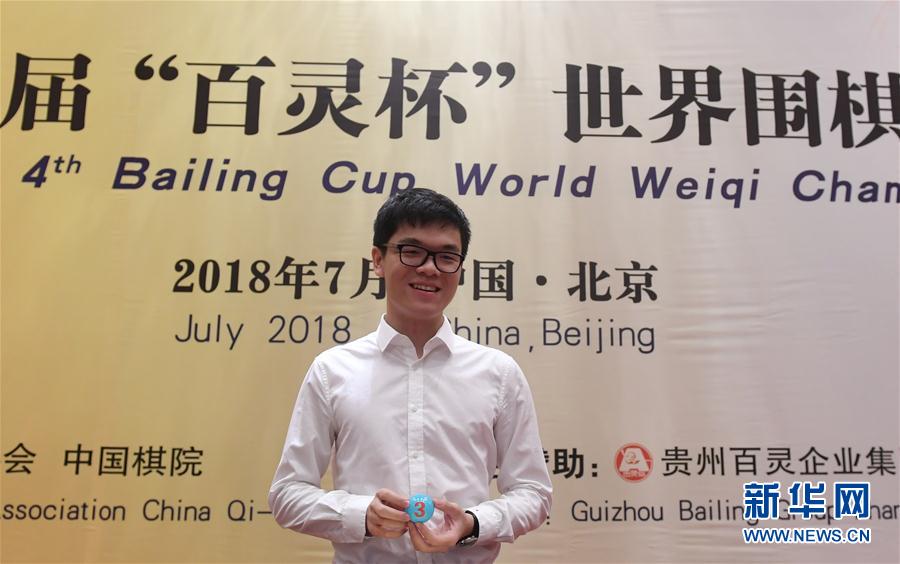 ↑7月23日,职业组中国棋手柯洁在抽签仪式上展示结果。新华社记者贾宇辰摄