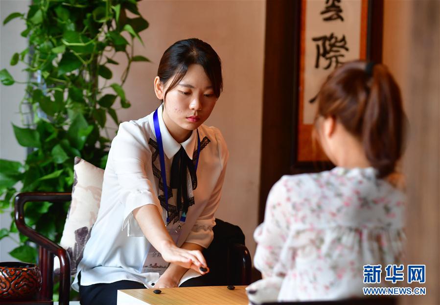 ↑7月25日,韩国选手金彩瑛(左)在比赛中落子。当日,首届“吴清源杯”世界女子围棋赛决赛第二局在福州吴清源围棋会馆举行。在首局比赛中,金彩瑛执白中盘战胜崔精。新华社记者魏培全摄