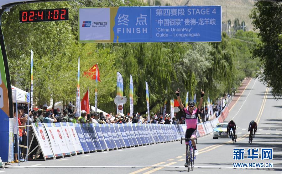 ↑ 7月25日,哥伦比亚曼萨纳车队选手赫尔南·阿吉雷在比赛中冲过终点。最终他获得赛段冠军,同时获得圆点衫和黄衫。新华社发(张龙摄)