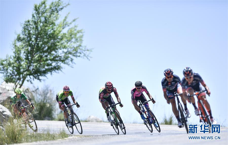 ↑ 7月25日,参赛选手在比赛中骑行。新华社记者吴刚摄