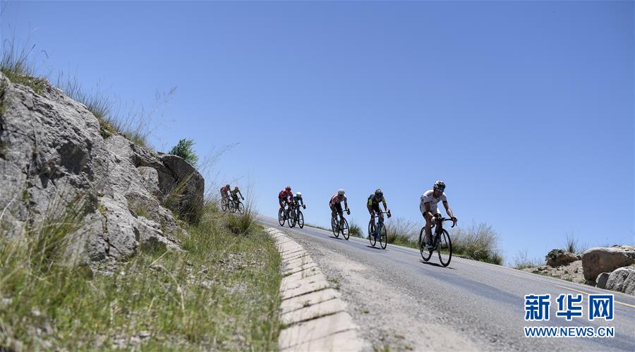 ↑7月25日,参赛选手在比赛中骑行。新华社记者吴刚摄