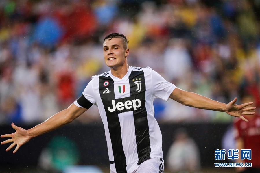 ↑7月25日,尤文图斯队球员法维利庆祝进球。 当日,在美国费城举行的国际冠军杯足球赛中,尤文图斯队以2比0战胜拜仁慕尼黑队。新华社/法新