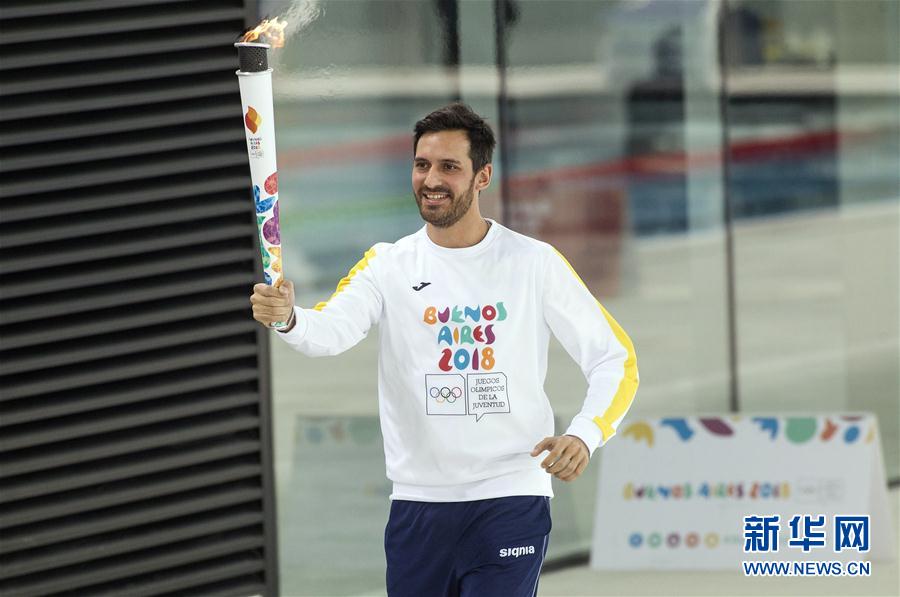 ↑7月26日,阿根廷运动员克里斯马尼奇手持火炬。 新华社发(阿尔贝托·拉乔摄)