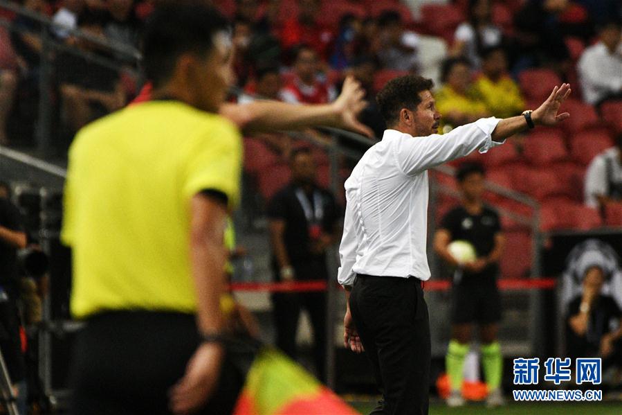↑7月26日,马德里竞技队主教练西蒙尼(右)在场边指挥。 新华社发(邓智炜摄)