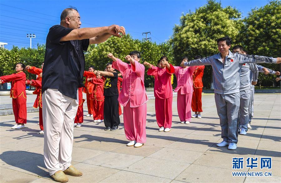 ↑7月26日,张玉林(前)指导形意拳爱好者练拳。 在河北省深州市,国家级非物质文化遗产形意拳代表性传承人张玉林,义务授拳数十年,推动形意拳进校园、进社区、进乡村,促进形意拳的保护、传承与发展。深州市是形意拳发源地,全国武术之乡。 新华社记者李晓果摄