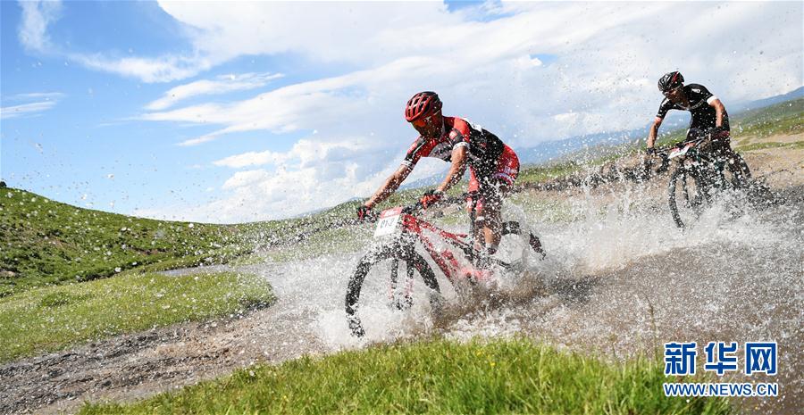 ↑7月26日,男子传奇团体组选手普金学(左)在第一赛段比赛中。 新华社记者陈斌摄