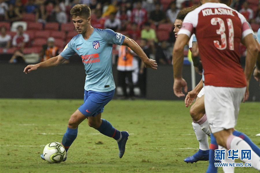 ↑7月26日,马德里竞技队球员维埃托(左)在比赛中进攻。 新华社发(邓智炜摄)