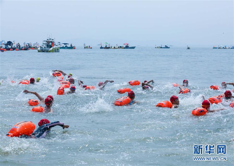↑7月28日,选手在横渡活动中。 当日,第九届厦金海峡横渡活动鸣枪开赛,200名选手在厦门至小金门进行总长约7公里的横渡。 新华社发