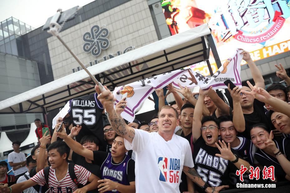 7月28日,2018NBA5v5精英篮球赛南京站火热开赛,美国NBA传奇球星贾森·威廉姆斯现身赛场,和球迷互动,为比赛助阵。据悉,获得2018NBA5v5南京站比赛冠军称号的篮球队将和广州、北京、成都站冠军队伍一道进军9月1日在上海举行的全国总决赛。中新社记者 泱波 摄