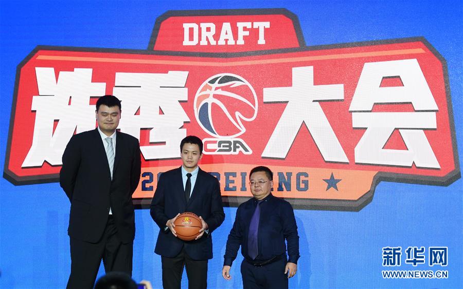 ↑7月29日,中国篮协主席姚明(左)和“状元”姜宇星(中)合影。 新华社记者张晨霖摄
