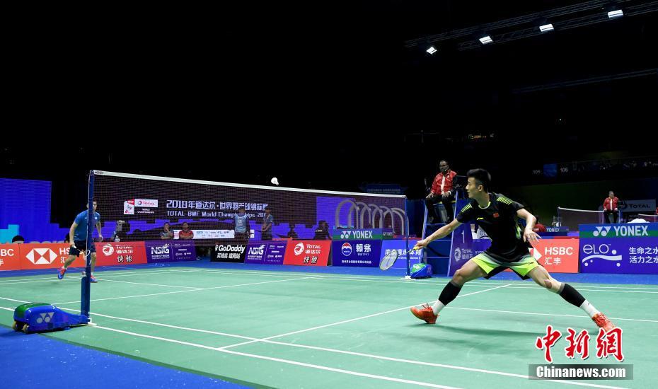 7月30日,2018年世界羽毛球锦标赛在南京拉开帷幕,中国选手、赛会男单8号种子谌龙(右)2:0战胜中国台北选手许仁豪,首轮顺利过关。中新社记者 侯宇 摄