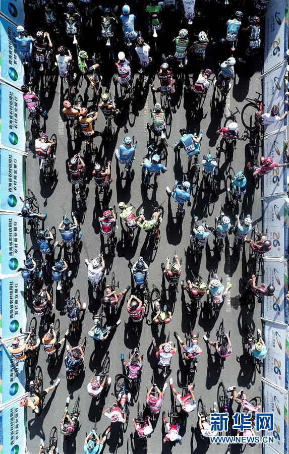 ↑ 7月30日,选手们在起点前等待发车。 新华社记者吴刚摄