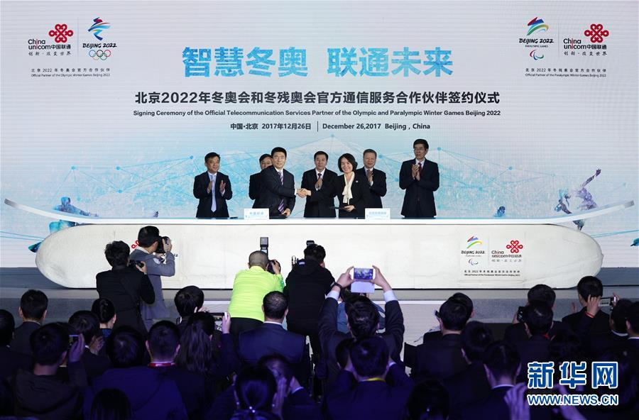 这是北京2022年冬奥会和冬残奥会官方通信服务合作伙伴签约仪式在北京举行,中国联通成为北京2022年冬奥会和冬残奥会官方通信服务合作伙伴(2017年12月26日摄)。 新华社记者鞠焕宗摄
