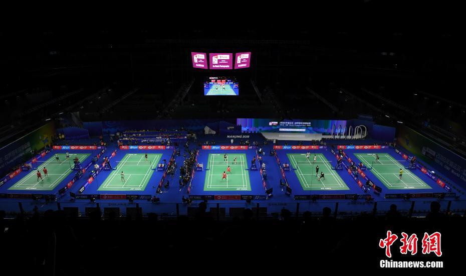7月31日,2018年世界羽毛球锦标赛第二比赛日在南京举行,各项比赛在赛场内的五块场地展开。中新社记者 侯宇 摄