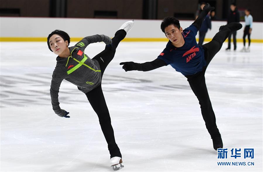 ↑ 7月31日,花样滑冰运动员隋文静(左)、韩聪在训练中。 当日,中国花样滑冰队公开训练课在位于北京首钢园区的花样滑冰训练馆举行。 新华社记者张晨霖摄