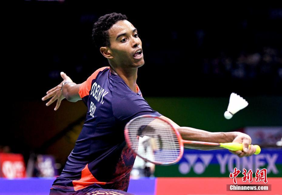 8月1日,巴西选手伊戈尔·科埃略在南京参加2018年世界羽毛球锦标赛男子单打的比赛,以2:1逆转战胜11号种子印度选手普拉诺伊。图为伊戈尔在比赛中回球。伊戈尔出生在巴西里约热内卢的贫民窟,曾经参加过2014年南京青奥会的羽毛球比赛,当时还曾得到过中国前羽毛球世界冠军孙俊的亲自指导。世锦赛期间,伊戈尔向采访他的记者吐露心声:“在我们那里,年轻人有两条路可选,一种是去贩毒,我有许多朋友因此而死去,另一种就是体育,羽毛球改变了我的人生!”中新社记者 侯宇 摄