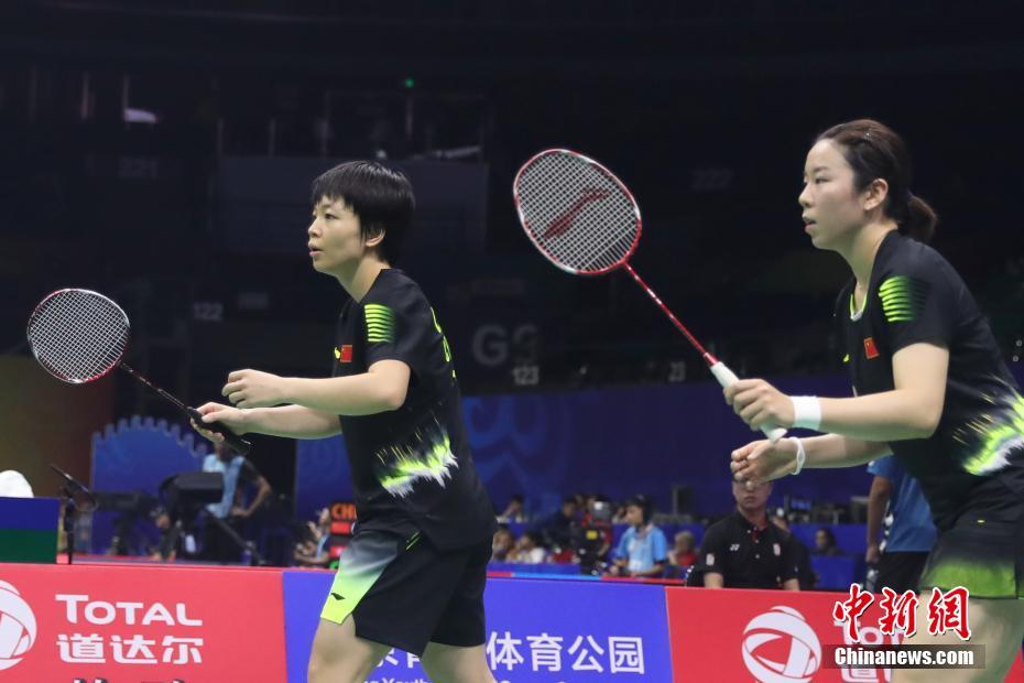 8月1日,2018年世界羽毛球锦标赛第三比赛日在南京火热进行,中国女双选手陈清晨/贾一凡以2比0战胜俄罗斯选手博洛托娃/达夫列托娃,轻松晋级。中新社记者 泱波 摄