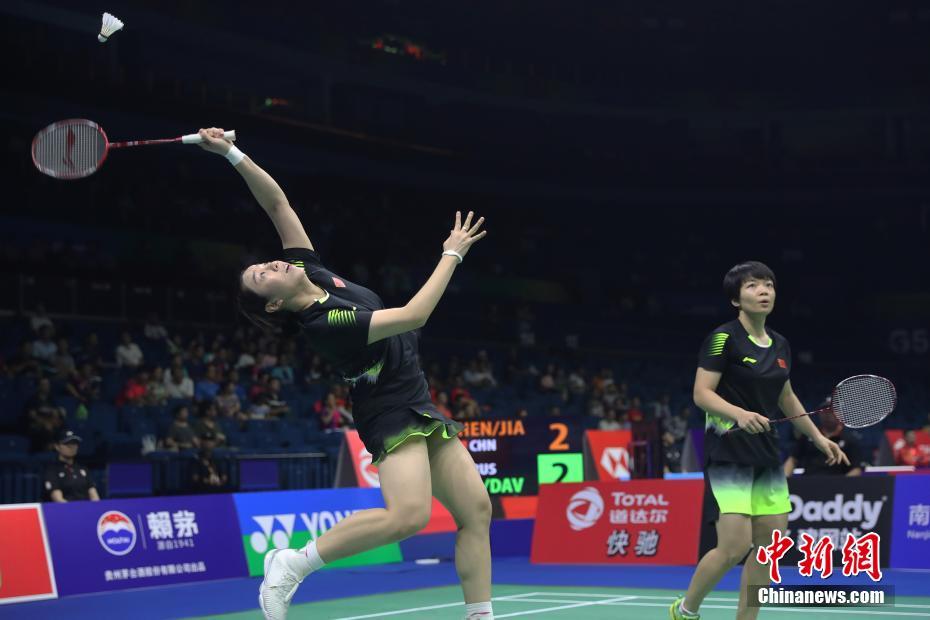 8月1日,2018年世界羽毛球锦标赛第三比赛日在南京火热进行,中国女双选手陈清晨/贾一凡以2比0战胜俄罗斯选手博洛托娃/达夫列托娃,轻松晋级。中新社记者 泱波 摄