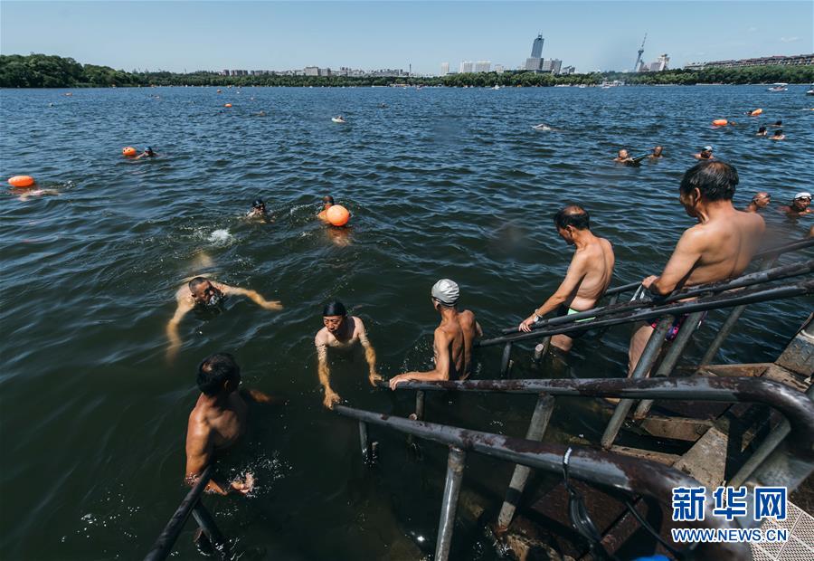 ↑ 8月1日,游泳爱好者在长春市南湖公园游泳。 夏日炎炎,在长春市南湖公园游泳区,每天都会有数百名游泳爱好者在水中畅游。 新华社记者许畅摄