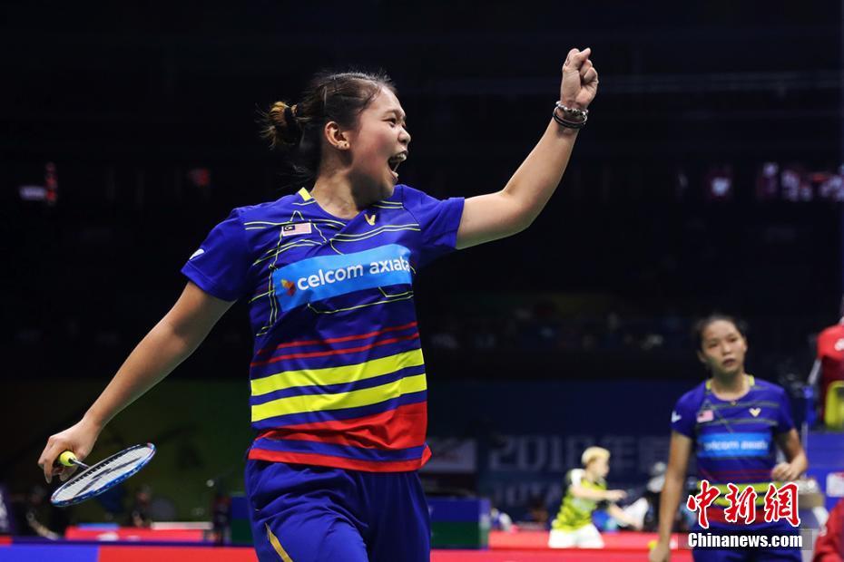 8月1日,2018年世界羽毛球锦标赛第三个比赛日在南京火热进行,从第一轮比赛中晋级的羽毛球高手们捉对“厮杀”,你来我往争夺下一轮晋级名额。图为马来西亚女双选手邹美君、李明艳在比赛中。 泱波 摄