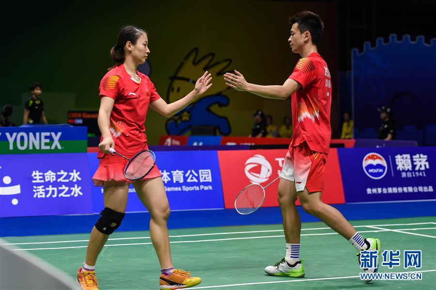↑8月2日,郑思维/黄雅琼(左)在比赛中。 当日,在江苏南京举行的2018世界羽毛球锦标赛混双第三轮比赛中,中国组合郑思维/黄雅琼以2比0击败印度尼西亚组合哈菲兹/格罗里亚,晋级八强。 新华社记者李博摄