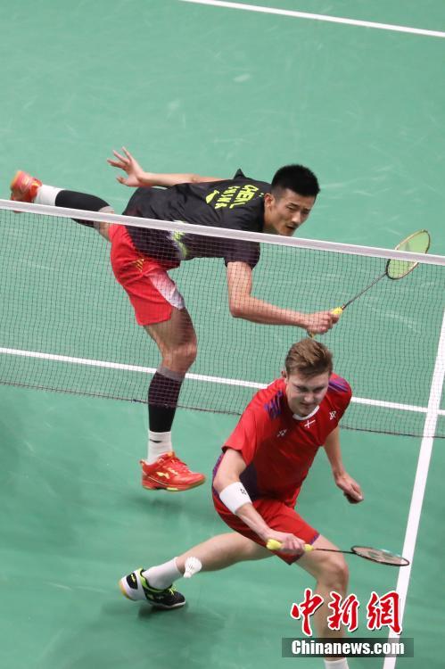 8月3日,2018年羽毛球世锦赛在南京继续进行,男单赛会8号种子、中国队的谌龙以2-0击败赛会头号种子、丹麦的安赛龙,成功晋级。中新社记者 泱波 摄