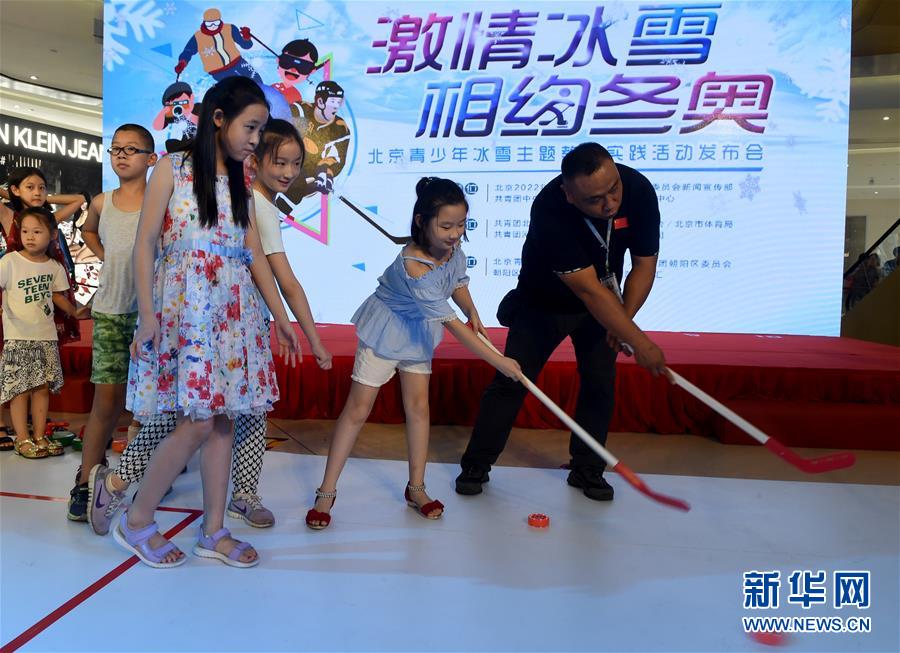8月4日,一些小朋友在活动现场体验旱地冰球。 当日,“激情冰雪 相约冬奥”北京青少年冰雪主题教育实践活动在北京朝阳区启幕。据介绍,除了当天举行的青少年冬奥教育嘉年华,本次冬奥主题教育实践活动还设计了“冰雪答题王”冬奥知识竞赛、“激情冰雪·相约冬奥”主题影像展、冬奥影像进校园进社区等内容,整体活动将持续至今年10月。 新华社记者 罗晓光摄