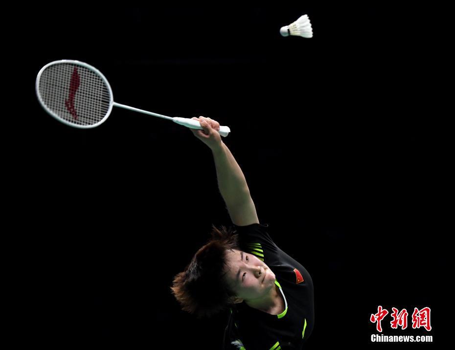 8月4日,2018年世界羽毛球锦标赛第六比赛日在南京进行,中国选手何冰娇在女单半决赛中1:2不敌西班牙选手、里约奥运会冠军马琳,无缘决赛。 中新社记者 侯宇 摄