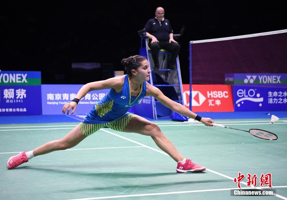8月4日,2018年世界羽毛球锦标赛第六比赛日在南京进行,在女单半决赛中,西班牙选手、里约奥运会冠军马琳2:1战胜中国小将何冰娇,晋级决赛。 中新社记者 侯宇 摄