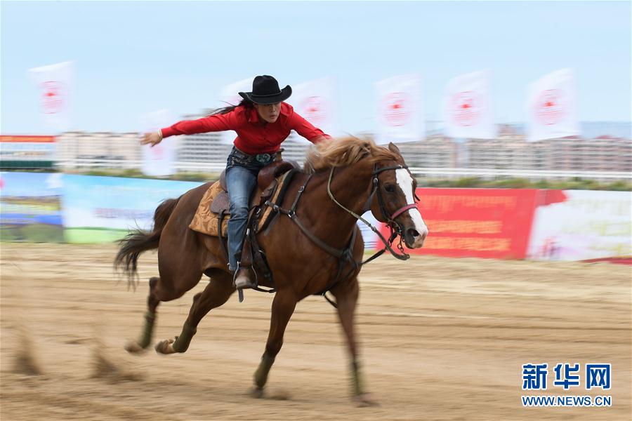 ↑8月5日,骑手希吉尔达来在绕桶结束后冲刺。当日,由中国马术协会主办的第七届中国马术大赛绕桶赛在内蒙古自治区锡林浩特市举行。奔跑、急转、冲刺,来自全国各地的骑手在绕桶个人赛上展开激烈的竞争。新华社记者刘磊摄