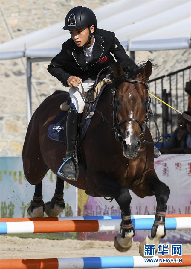 ↑8月5日,小骑手陈雨辰在少年组马术场地障碍比赛中角逐。当日,为期两天的2018年全国马术场地障碍赛青少年锦标赛在内蒙古自治区锡林浩特市赛马场落幕。新华社记者刘磊摄