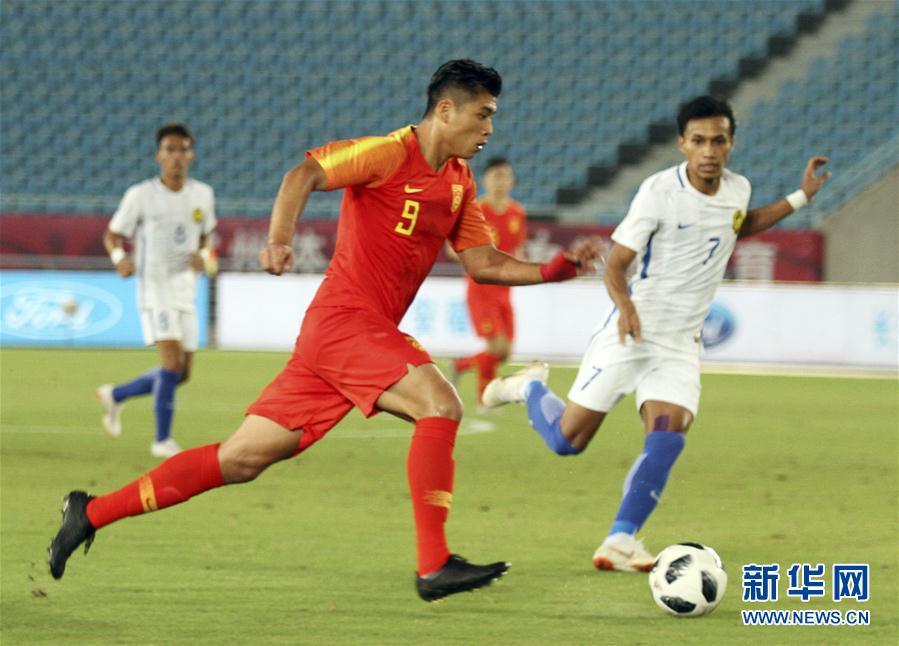 ↑8月5日,中国队球员张玉宁(左)在比赛中进攻。 新华社发(陈暐摄)