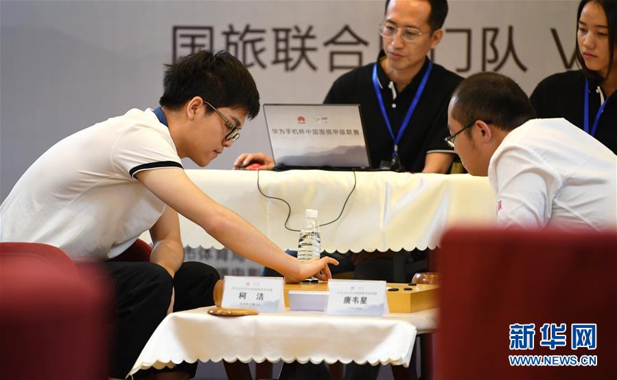 8月6日,国旅联合厦门队选手柯洁(左)与天津四建队选手唐韦星在比赛中,最终柯洁获胜。 当日,2018中国围棋甲级联赛第十一轮比赛在甘肃兰州举行,国旅联合厦门队主场以3比1战胜天津四建队。 新华社记者陈斌摄