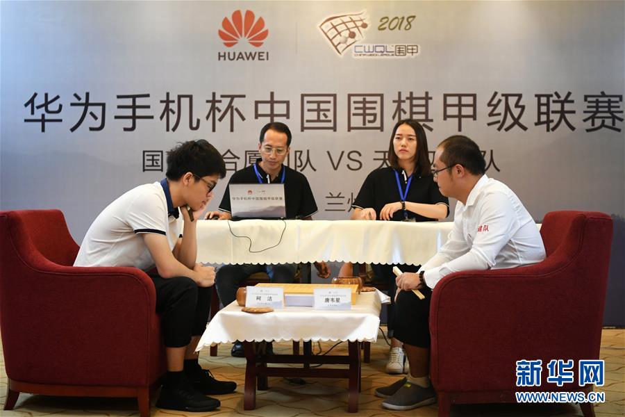 8月6日,国旅联合厦门队选手柯洁(左)与天津四建队选手唐韦星在比赛中,最终柯洁获胜。新华社记者陈斌摄