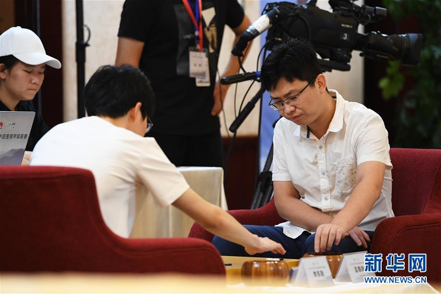 8月6日,天津四建队选手孟泰龄(右)与国旅联合厦门队选手李东勋在比赛中,最终孟泰龄负于李东勋。 新华社记者陈斌摄