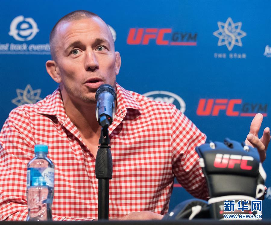 8月6日,乔治·圣皮埃尔在记者会上。新华社发(朱宏业摄)