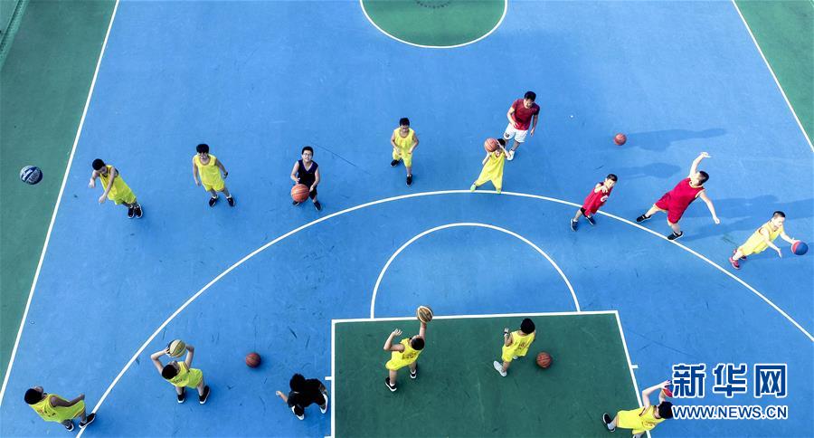8月8日,安徽省庐江县庐城镇的居民在县全民健身活动中心练习篮球基本动作。 当日是全民健身日,各地举行丰富多彩的健身活动,倡导文明健康的生活方式。 新华社发(左学长 摄)