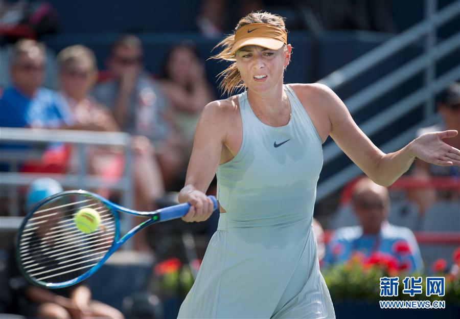 ↑8月7日,莎拉波娃在比赛中回球。 当日,在加拿大蒙特利尔举行的罗杰斯杯网球赛女单第一轮比赛中,俄罗斯选手莎拉波娃以2比0战胜保加利亚选手塞西尔·卡拉坦切娃,晋级下一轮。 新华社发(宋伟仁摄)