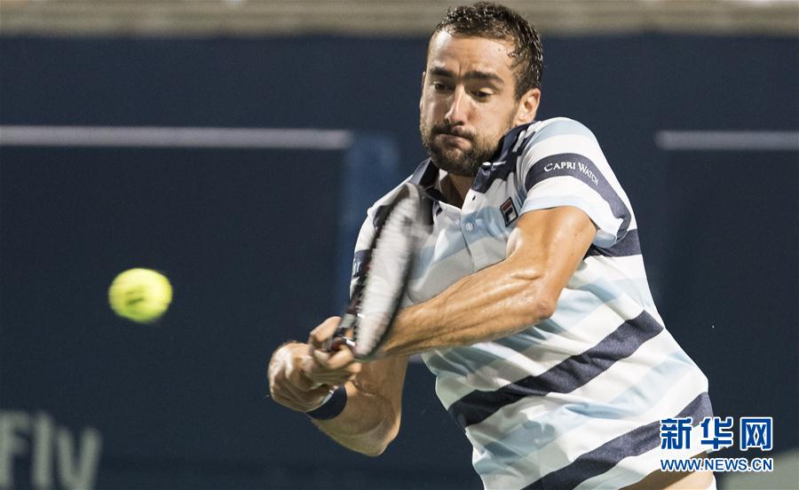 ↑8月7日,西里奇在比赛中回球。 当日,在加拿大多伦多举行的2018年罗杰斯杯网球赛男单第二轮比赛中,克罗地亚选手西里奇以2比1战胜同胞博纳·丘里奇,晋级下一轮。 新华社发(邹峥摄)