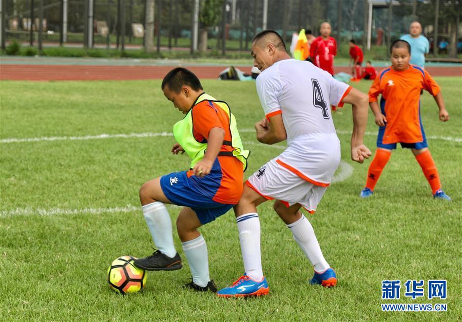 ↑8月8日,小选手在参加足球比赛。 当日,由中国残疾人联合会、中国特奥委员会、北京市残疾人联合会主办的“2018年北京市特奥足球周”活动在京开幕。来自北京市健翔学校、平谷区特教中心、密云区特教学校等单位的共八支代表队参加了本次活动。 新华社记者李欣摄