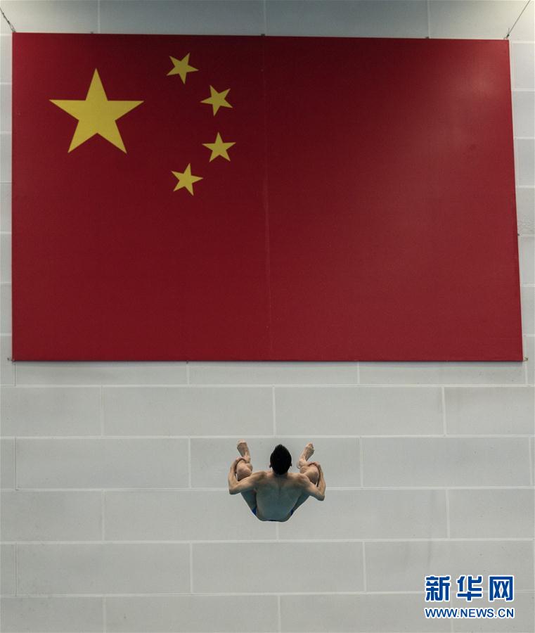↑8月9日,国家队队员曹缘在训练中。 当日,中国国家跳水队在北京进行训练,备战2018雅加达亚运会。 新华社记者费茂华摄