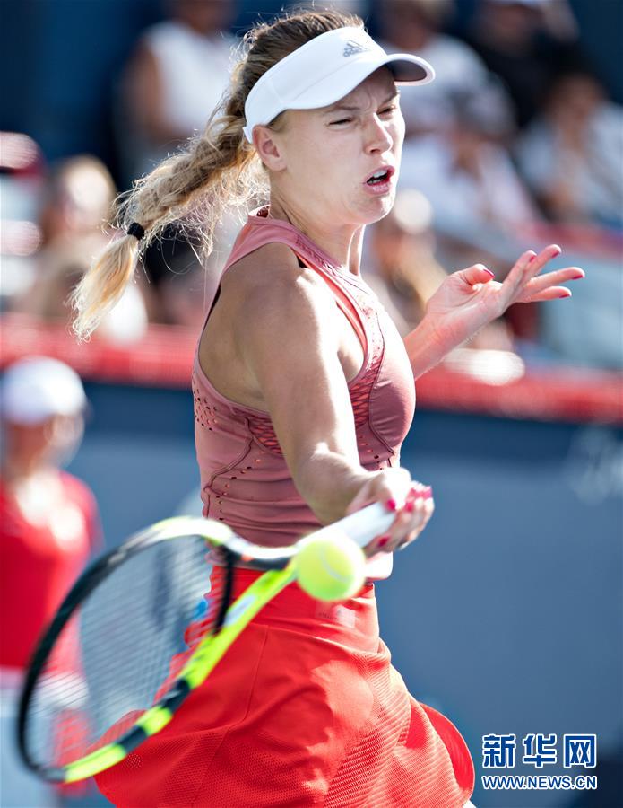 8月9日,沃兹尼亚奇在比赛中回球。新华社发(宋伟仁摄)