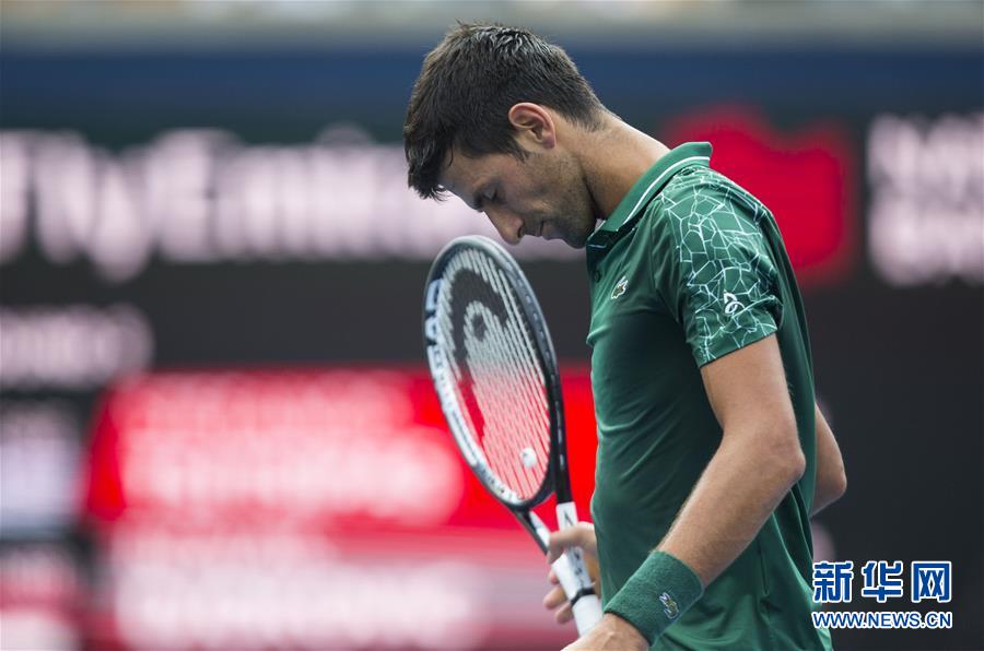 8月9日,焦科维奇在比赛中。 当日,在加拿大多伦多举行的罗杰斯杯网球赛男单第三轮比赛中,塞尔维亚选手焦科维奇以1比2不敌希腊选手西西帕斯,无缘八强。 新华社发(邹峥摄)