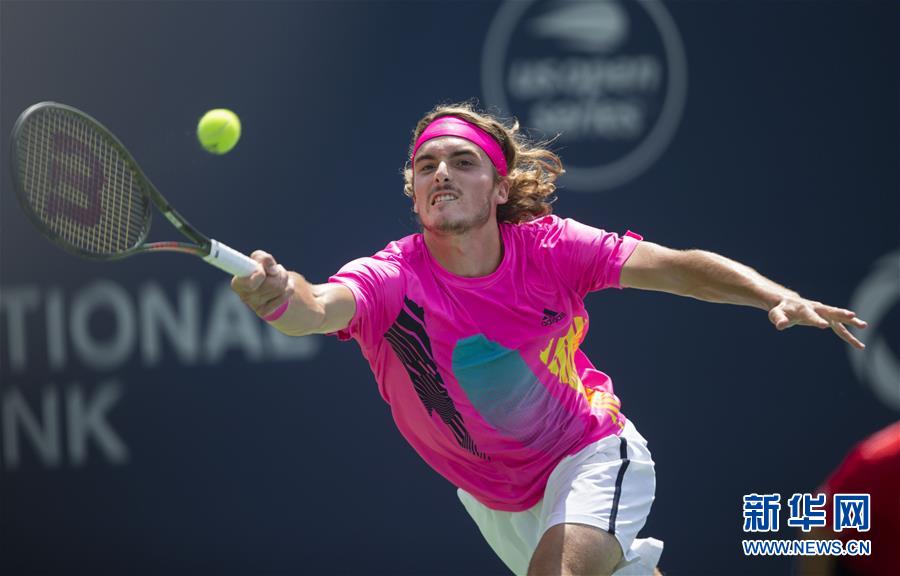 8月9日,西西帕斯在比赛中回球。 当日,在加拿大多伦多举行的罗杰斯杯网球赛男单第三轮比赛中,希腊选手西西帕斯以2比1战胜塞尔维亚选手焦科维奇,晋级八强。 新华社发(邹峥摄)